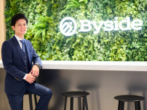 「Byside」という社名とロゴを決めるのに3か月を費やしました。社名は企業の人格を象徴すると考えており、「寄り添う」という意味を持たせています。M&A業界は従来、売り手と買い手のアドバイザーが対立し、交渉の場は常に緊張感に包まれていました。しかし私は“買い手に特化する”という業界唯一のモデルを打ち立て、関わる全ての人に寄り添う姿勢を明確にしました。相手の立場を尊重し、譲れる部分は譲り、譲れない部分は守る。そんな誠実な関わり方を示す社名として「Byside」が生まれました。響きの良さと独自性も重視し、今では社員にも業界にも深く浸透しています。