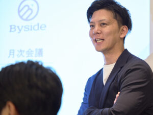 経営の信念は「道徳・変化・仲間・揺るがない想い」の4つです。まず、「いやなやつ」とは働かない。誠実さと道徳を持つ人とだけ共に進む。次に、変化を恐れず挑戦し続けること。そして仲間やその家族の幸せまで思いを馳せること。最後に、どんな困難にも負けない強い想いを持つことです。これらを浸透させるために新入社員にはBysideのミッションステートメント(行動指針)を私が直接3時間かけて伝える研修があります。非常に体力を使いますが、理念を全員が体現する組織を築くことこそ、未来の成長につながると信じています。